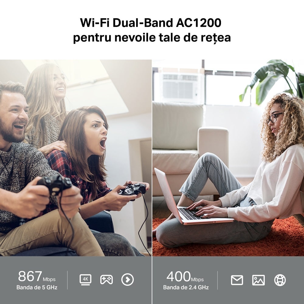 Router Wireless Gigabit TP-LINK Archer A64 AC1200, Dual-Band 400 + 867 Mbps, negru
