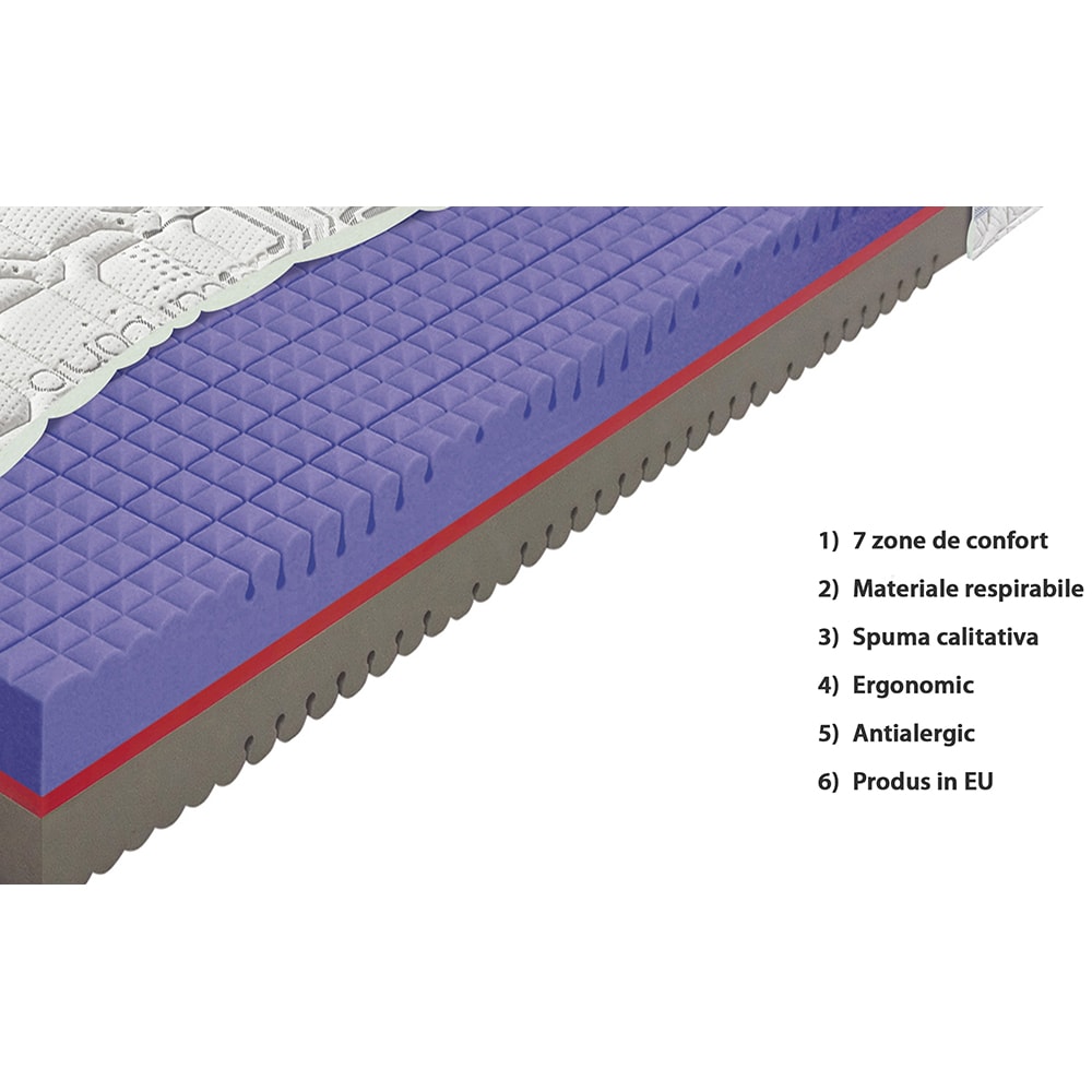 Saltea ortopedica MATERASSO Lavender Duo, 140 x 200 cm, Spuma cu memorie, Fermitate medie