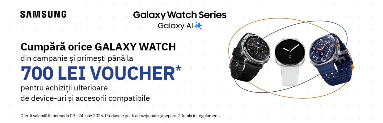 Samsung lanseaza o noua serie de smartwatch-uri care imbina designul rafinat cu functii avansate pentru sanatate, sport si viata conectata. Modelele Galaxy Watch8, Galaxy Watch8 Classic si Galaxy Watch Ultra sunt mai rapide, mai inteligente si mai adaptate stilului tau de viata.