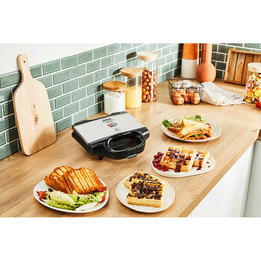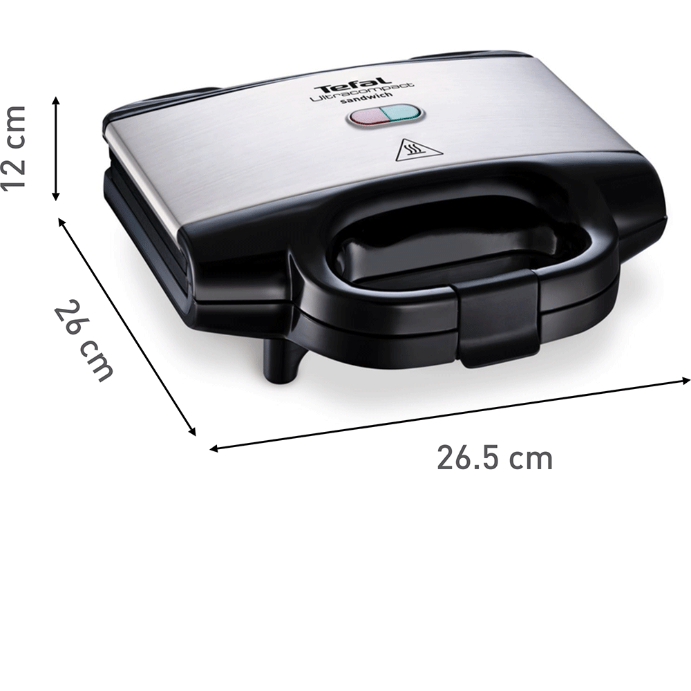 Sandwich maker TEFAL Ultracompact SM155212, 700W, maner izolat termic, negru-argintiu