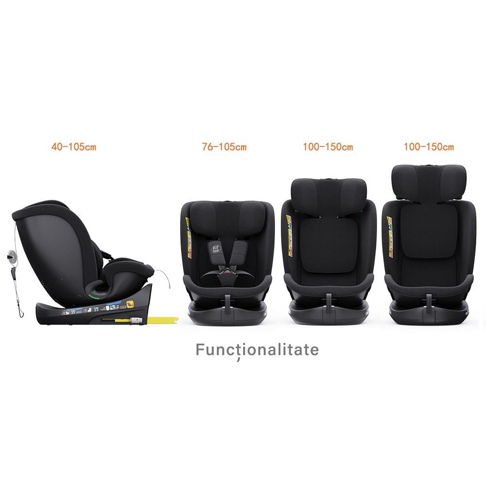 Scaun auto BUF BOOF B-Joy Deluxe rotativ 360 grade BJOYBLACK, Isofix, 0-36 kg, i-Size, negru