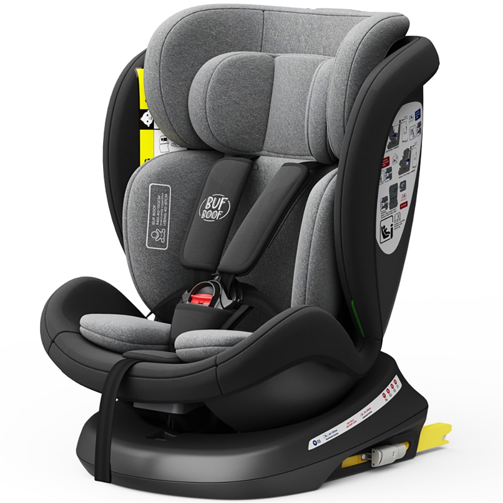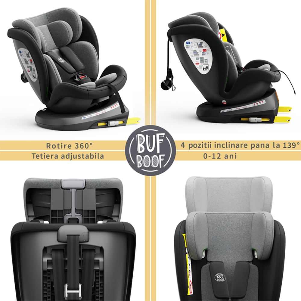 Scaun auto BUF BOOF TWT Plua rotativ 360 grade ISIZETWTBL, Isofix, 0-36 kg, R129, gri-negru