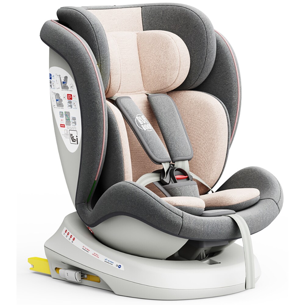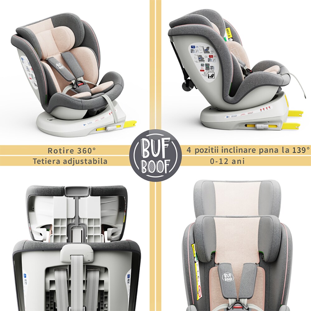 Scaun auto BUF BOOF TWT Plus rotativ 360 grade ISIZETWTPINK, Isofix, 0-36 kg, R129, roz deschis-gri