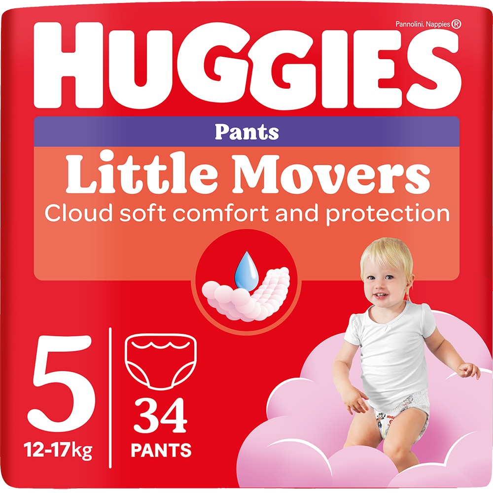 Scutece chilotel HUGGIES Little Movers Jumbo nr 5, Fata, 12-17 kg, 34 buc