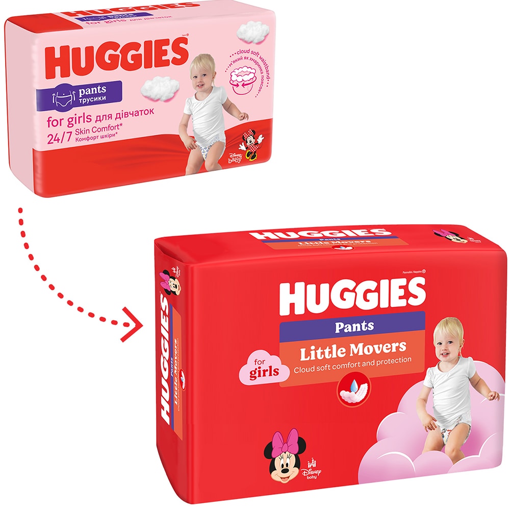 Scutece chilotel HUGGIES Little Movers nr 5, Fata, 12-17 kg, 96 buc