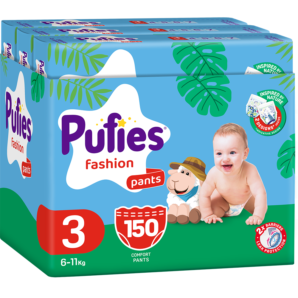 Scutece chilotel PUFIES Fashion Maxi nr 3, Unisex, 6-11kg, 150 buc