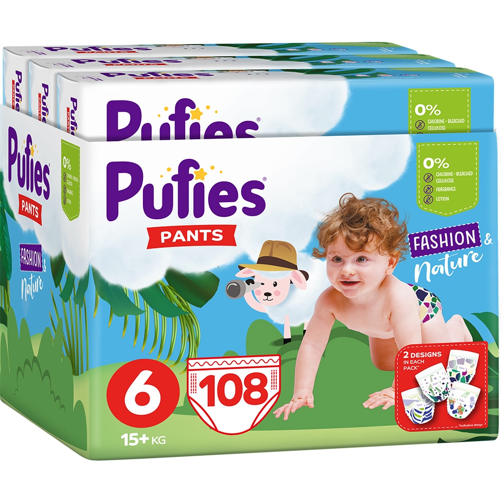 Scutece chilotel PUFIES Fashion & Nature Extra Large nr 6, Unisex, 15+ kg, 108 buc
