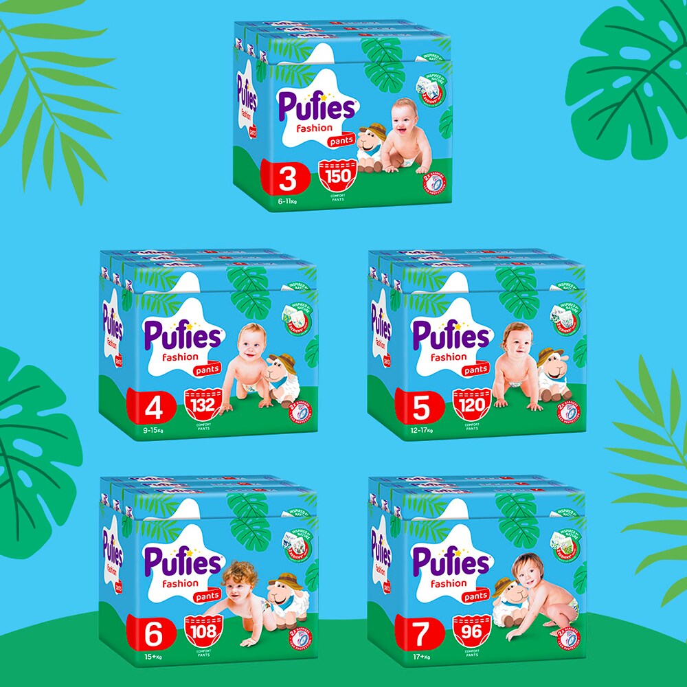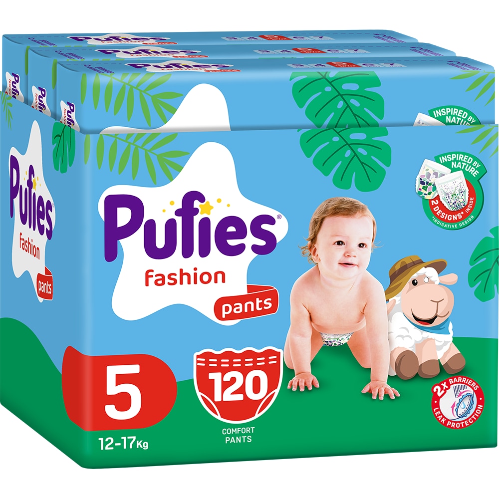 Scutece chilotel PUFIES Fashion&Nature Junior nr 5, Unisex, 12-17 kg, 120buc