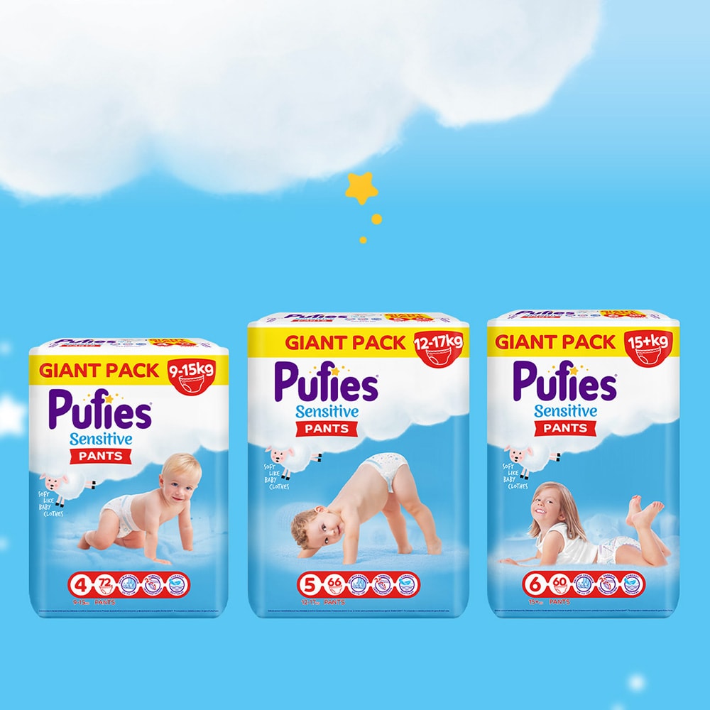 Scutece chilotel PUFIES Sensitive Junior nr 5, 12-17 kg, 66 buc