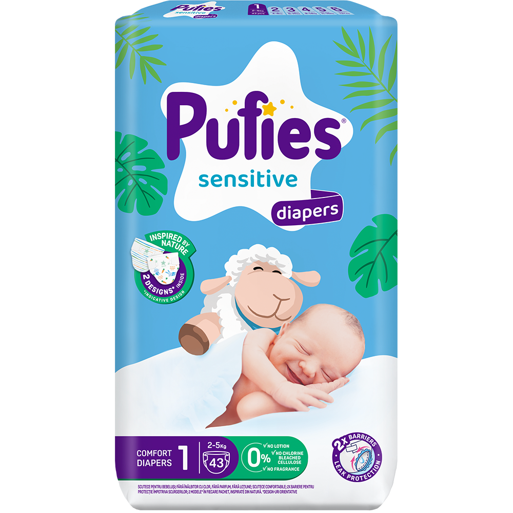 Scutece PUFIES Sensitive Newborn nr 1, Unisex, 2-5 kg, 43 buc