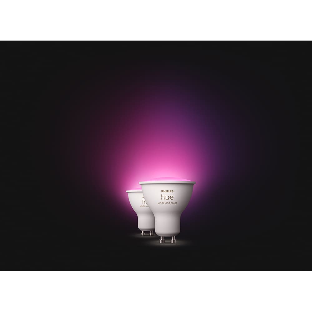 Set 2 becuri LED PHILIPS HUE, GU10, 5W, 350 lm, Wi-Fi, lumina variabila, compatibil Alexa, Google Assistant