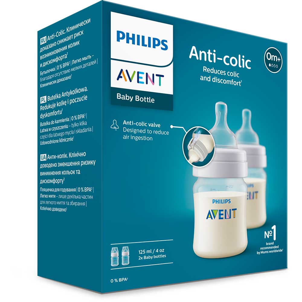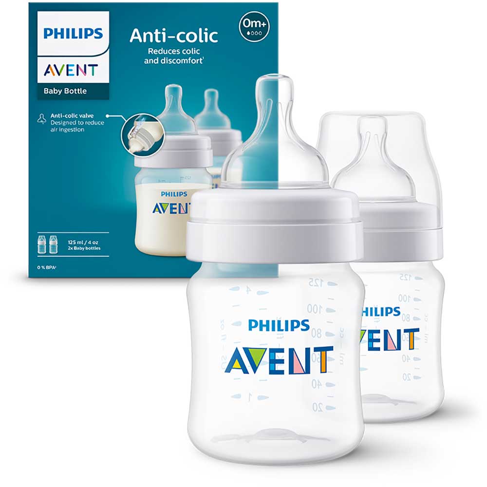 Set 2 biberoane anticolici PHILIPS AVENT SCY100/02, flux nou-nascut, 0 luni+, 125ml, alb-transparent