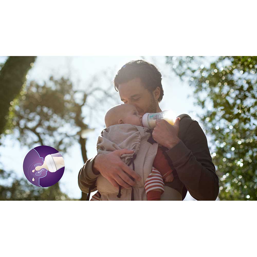 Set 2 biberoane cu dispozitiv anticolici PHILIPS AVENT Natural Response AirFree SCY670/02, flux nou-nascut, 0 luni+, 125ml, alb-verde