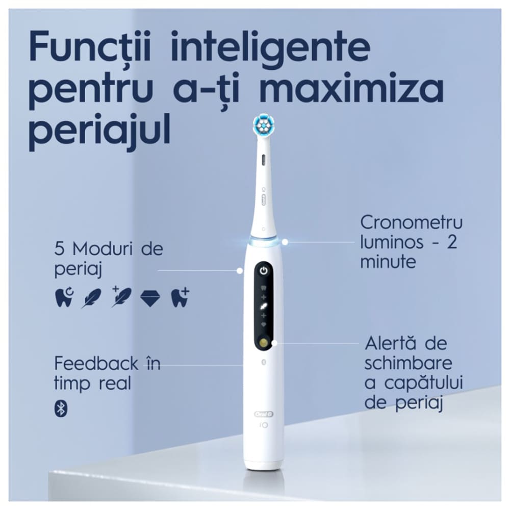 Set 2 periute de dinti electrice ORAL-B iO5, Bluetooth, 40000 pulsatii/min, Curatare 3D, 5 programe, 2 capate, alb-negru