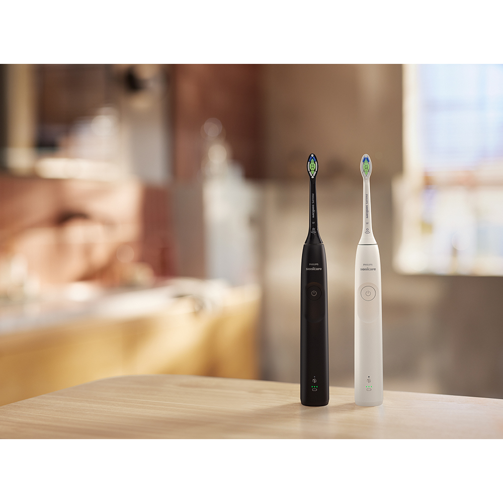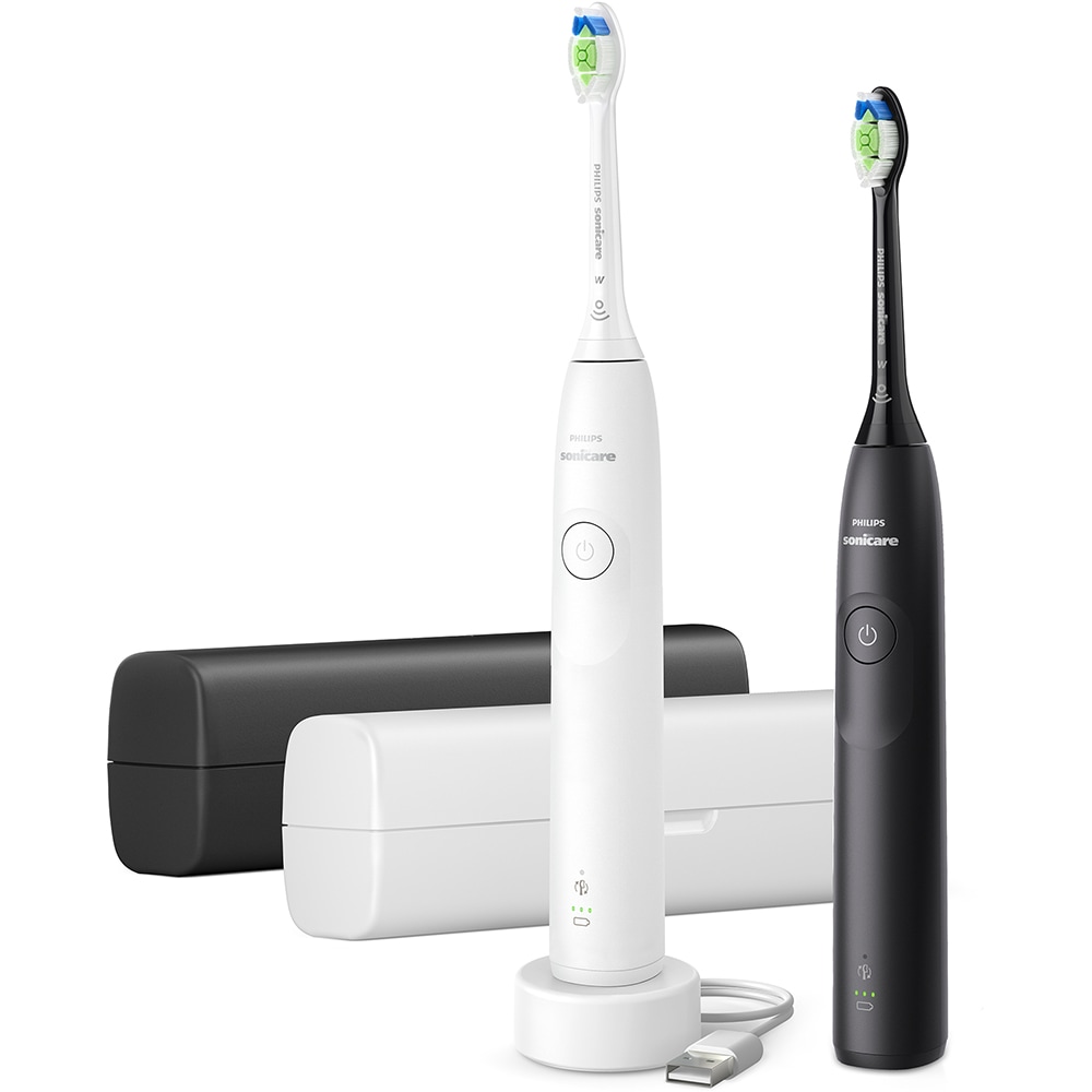 Set 2 Periute de dinti electrice PHILIPS Sonicare 5300 HX7109/01, 62000 miscari/min, 1 program, 2 capete, alb-negru