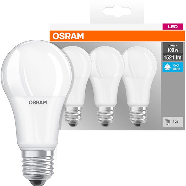Set 3 becuri LED OSRAM A100, E27, 13W, lumina neutra