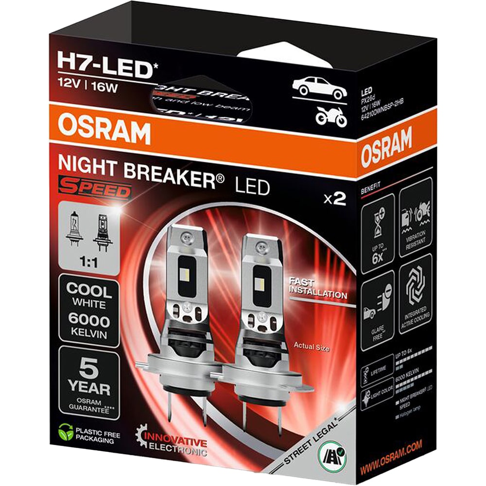 Set becuri auto OSRAM Night Breaker Speed LED, H7, 6000K, 16W, 2 buc, Omologat RAR