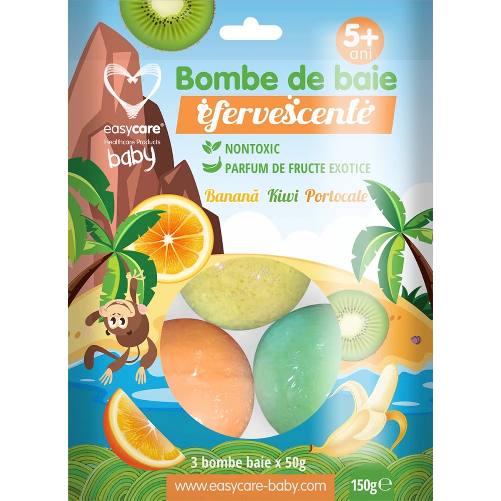 Set bomba baie efervescenta EASYCARE Fructe exotice EASY00182, 150g, 3 buc