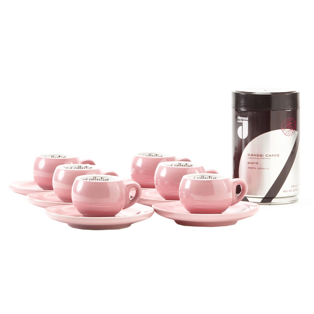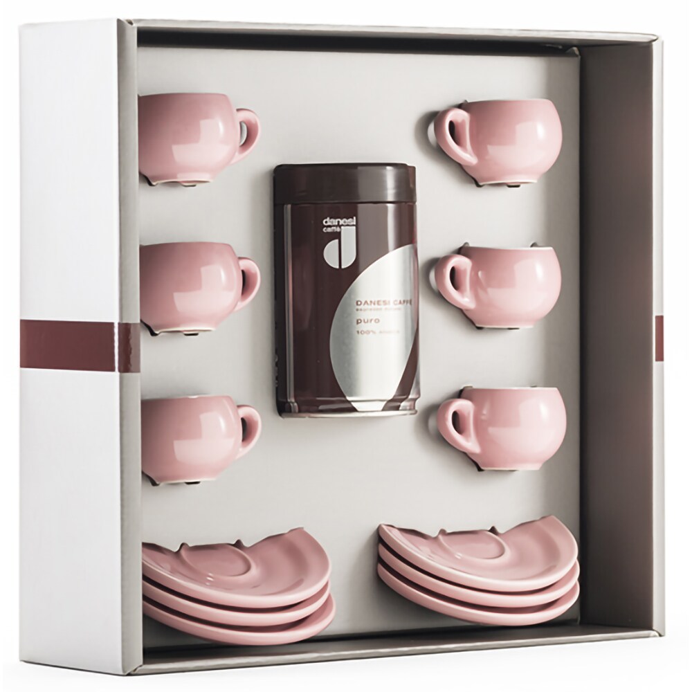 Set cafea macinata DANESI CAFFE 250g + 6 cesti espresso, roz