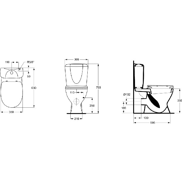 Set compact IDEAL STANDARD Eurovit W908701, montaj pe pardoseala, evacuare orizontala, cu capac, alb