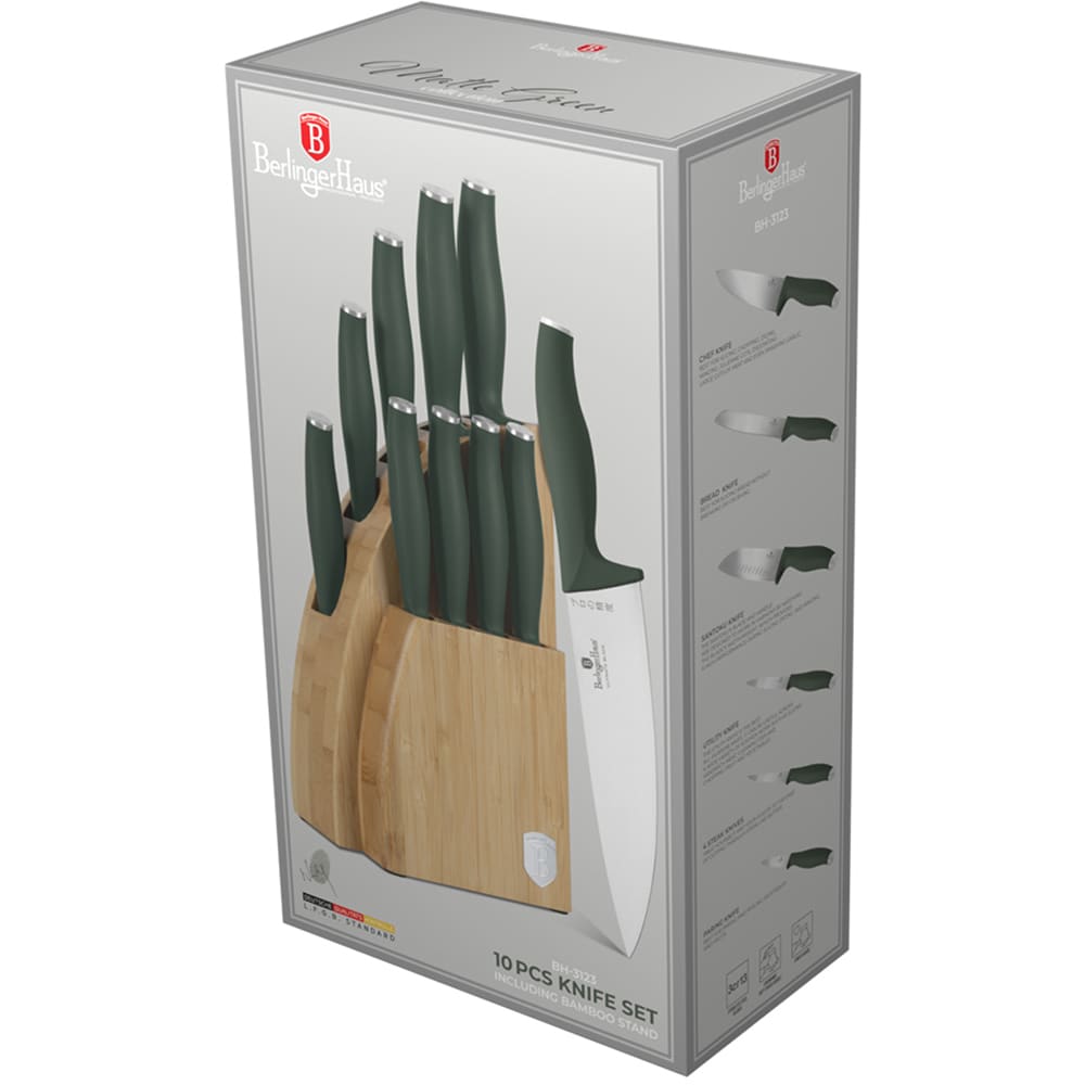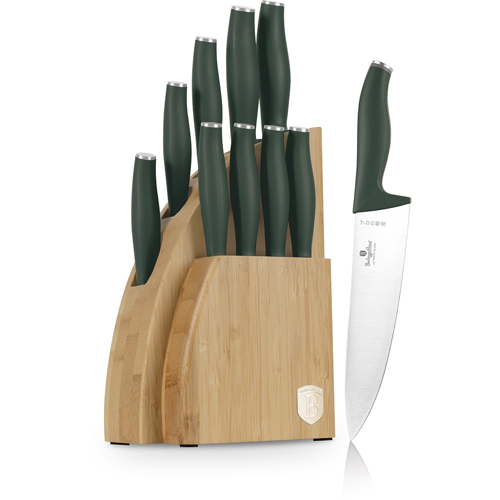Set cutite BERLINGER HAUS BH/3123 + suport bambus, 9 piese, otel, 9-20cm, verde