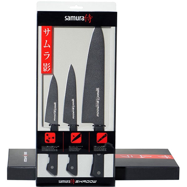 Set cutite SAMURA Shadow SH-0220, 3 piese, 9.9 - 20.8cm, otel, negru