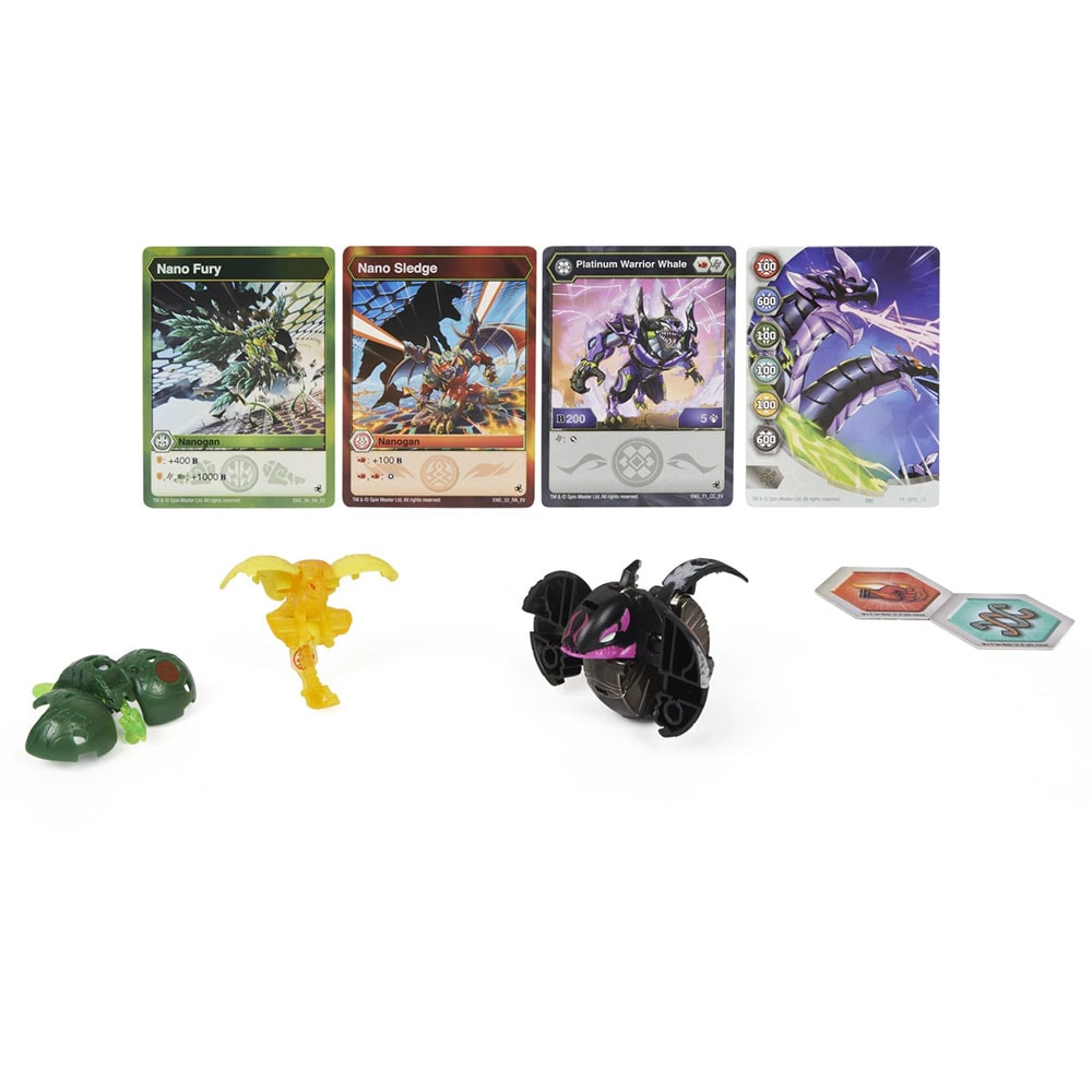 Set figurine BAKUGAN Evolutions - Platinum Powerup Warrior Whale Nano Fury si Nano Sledge 037033780, 6 ani+, multicolor
