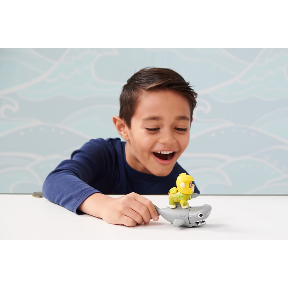 Set figurine PAW PATROL Aqua Pups - Rubble si rechinul ciocan 20139323, 3 ani+, galben-gri