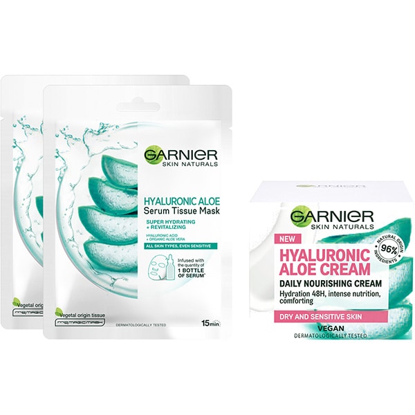 Set GARNIER Skin Naturals pentru ten sensibil: Crema hidratanta, 50ml + Masca de fata, 2buc, 32g