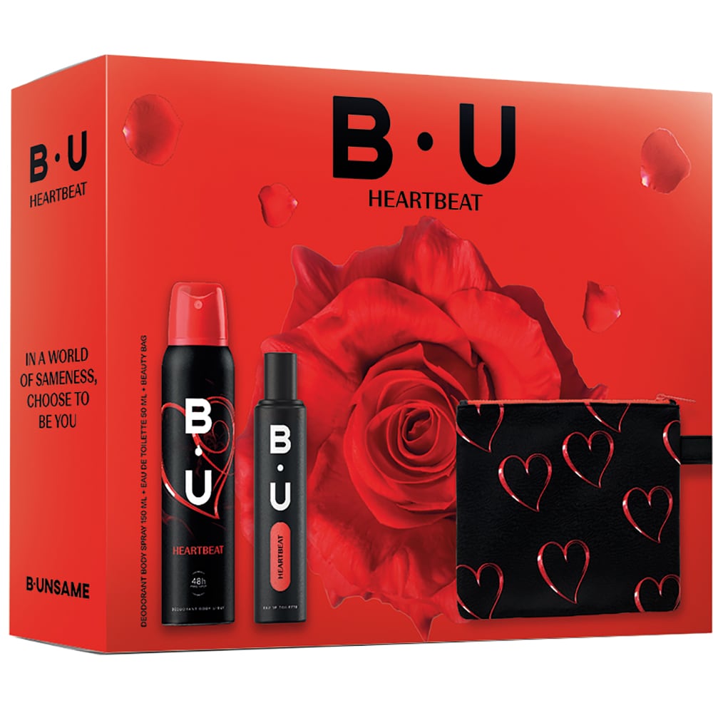 Set ingrijire corp B.U Heartbeat: Apa de toaleta, 50ml + Deodorant spray + cadou