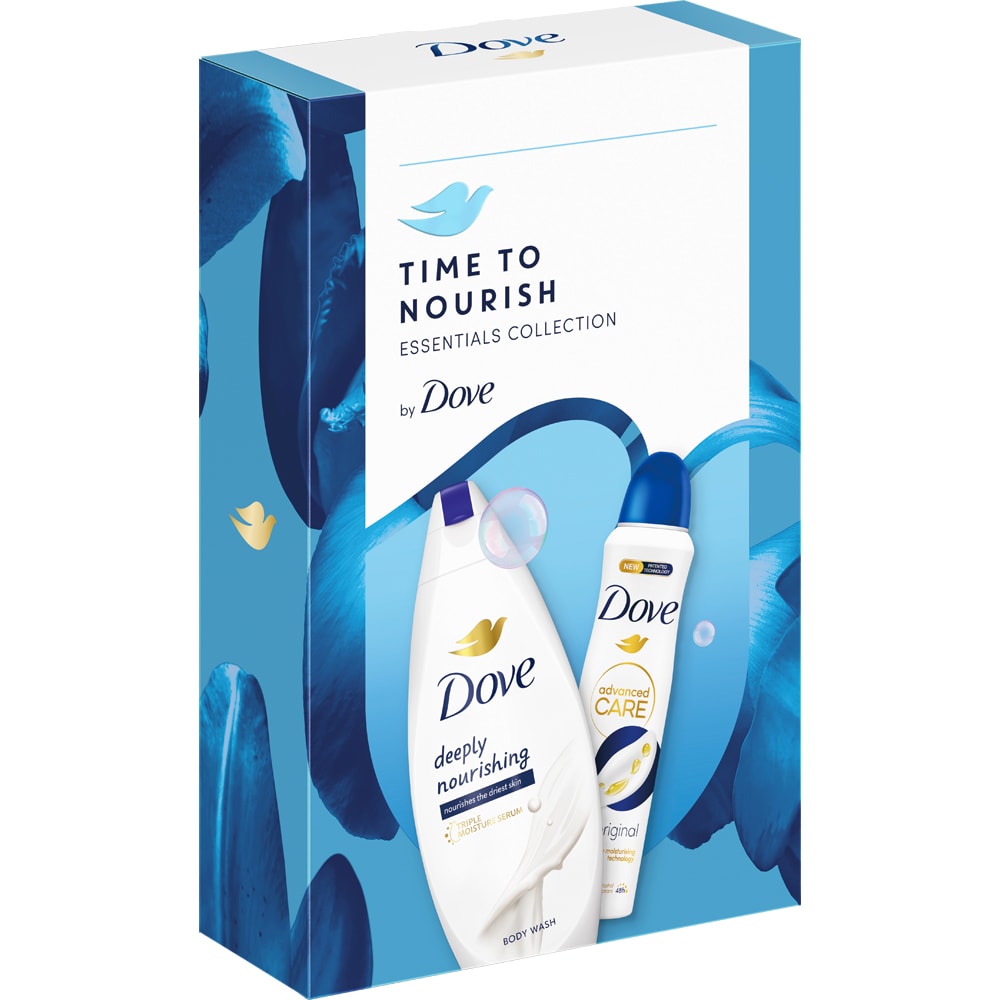 Set ingrijire corp DOVE: Gel de dus Deeply Nourishing, 250ml + Deodorant spray Original, 150ml