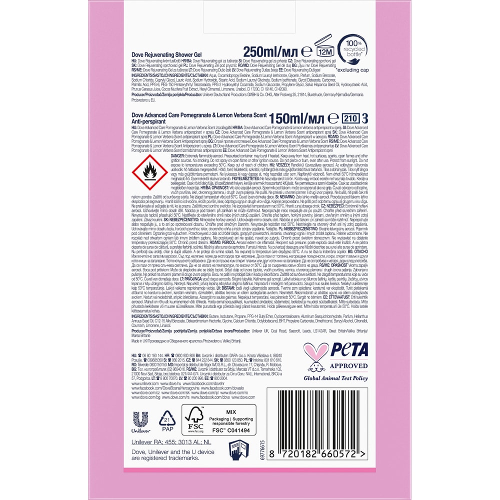 Set ingrijire corp DOVE: Gel de dus Rejuvenating, 250ml + Deodorant spray Pomegranate & Lemon Verbena, 150ml