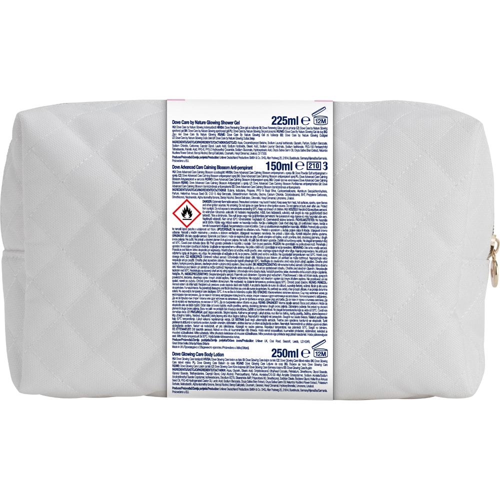 Set ingrijire corp DOVE Glowing: Gel de dus, 225ml + Deodorant spray Calming Blossom, 150ml + Lotiune de corp, 250ml