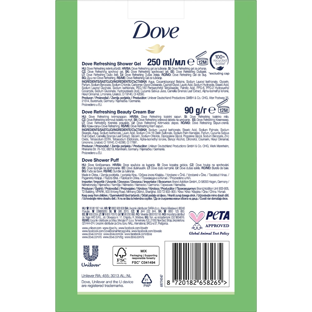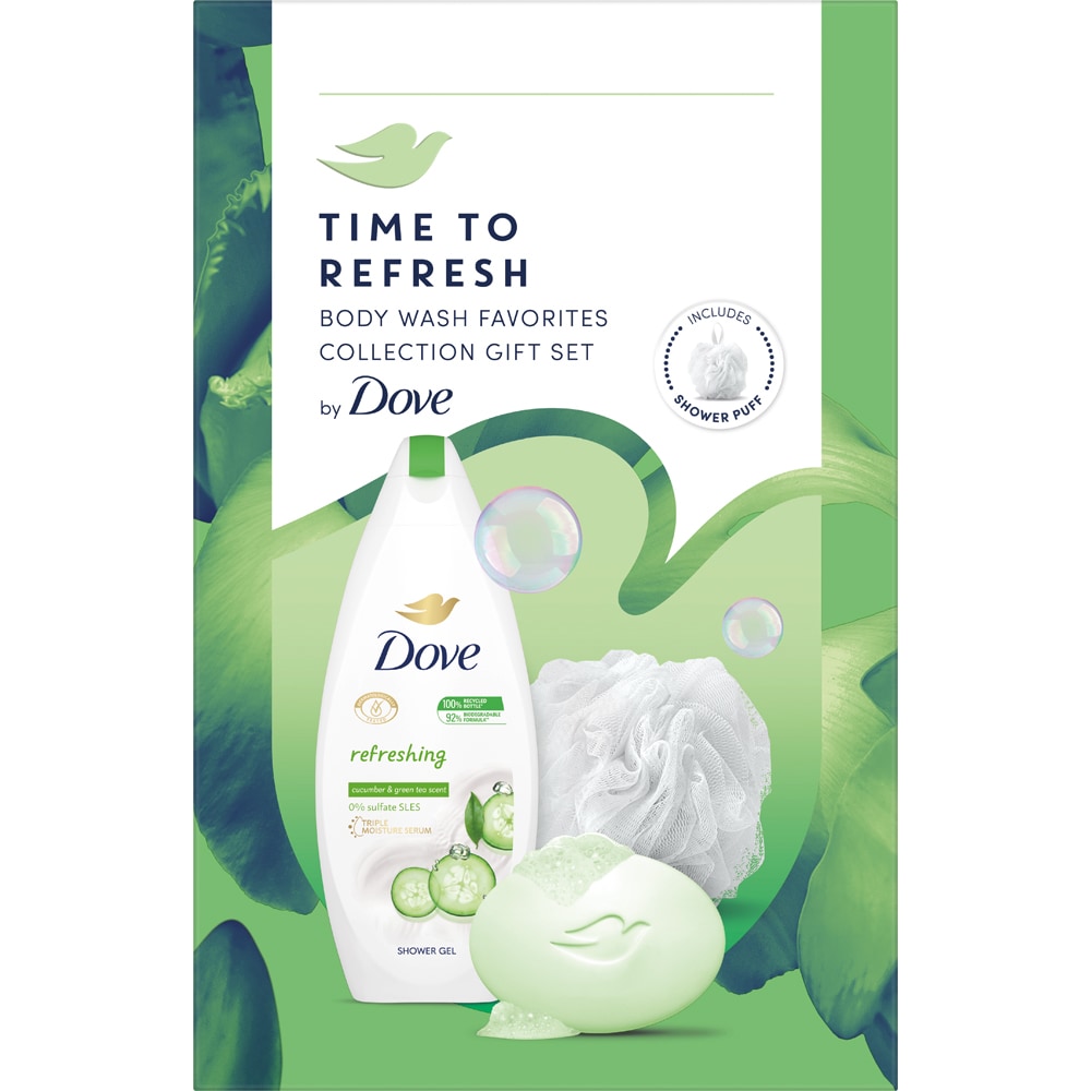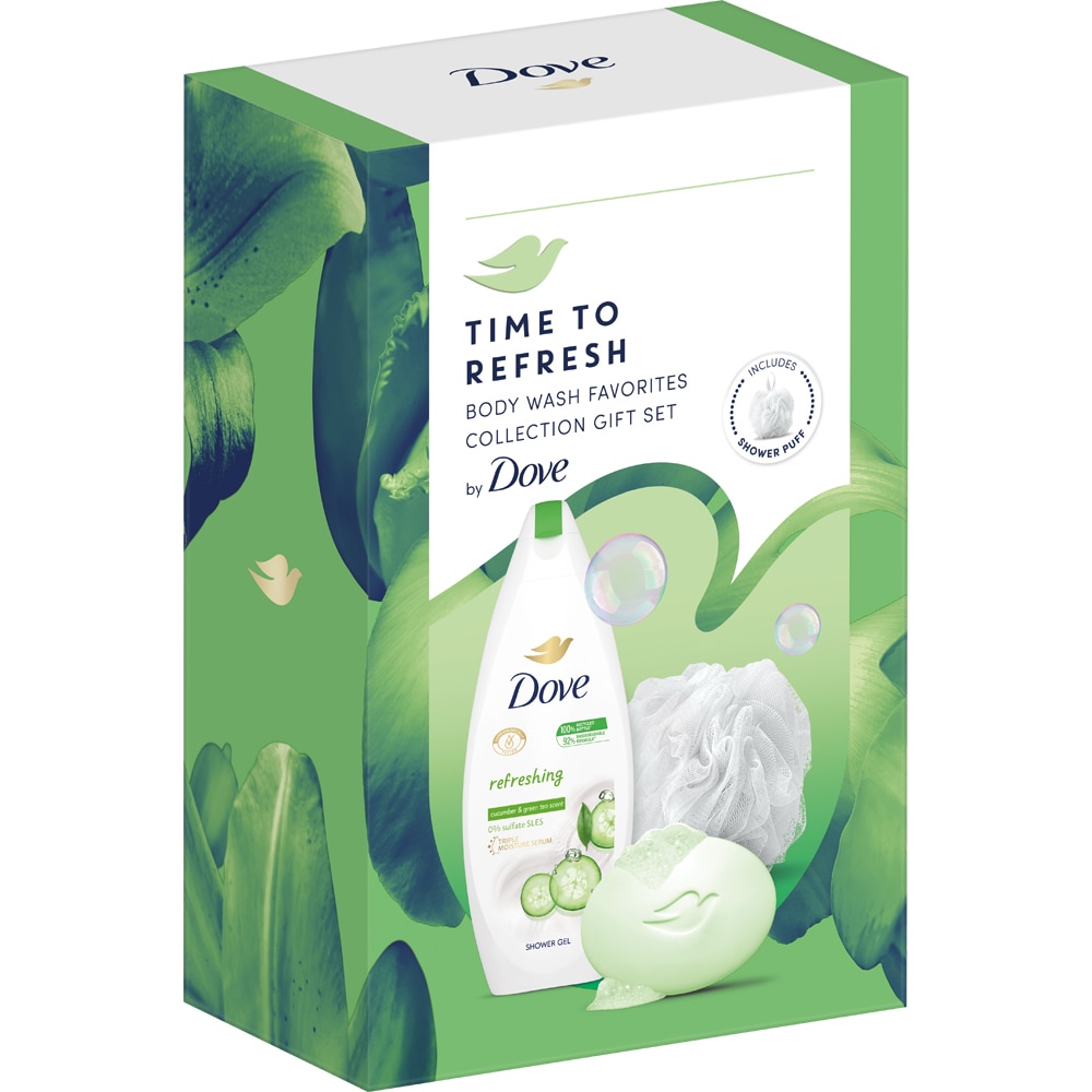 Set ingrijire corp DOVE Refreshing: Gel de dus, 250ml + Sapun, 90g + burete de baie
