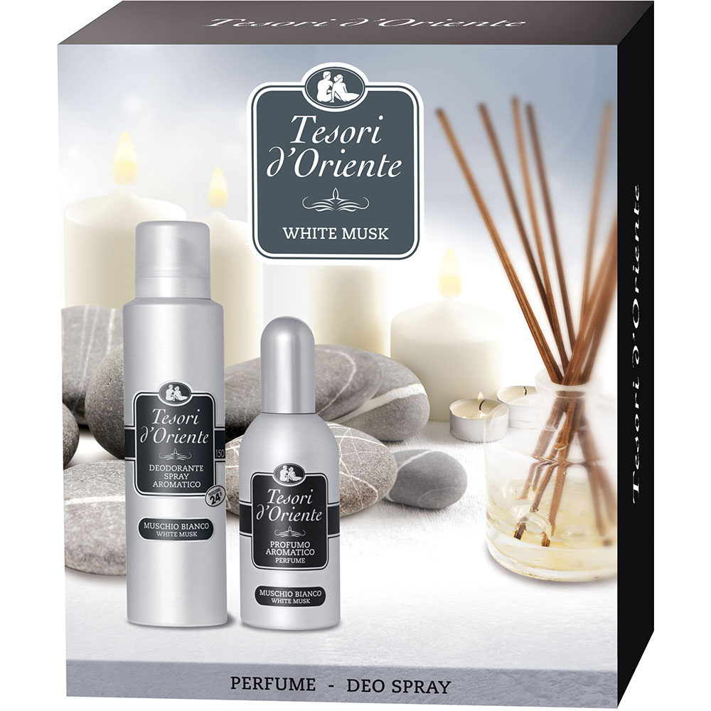 Set ingrijire corp TESORI D'ORIENTE Mosc Alb: Apa de toaleta, 100ml + Deodorant spray, 150ml