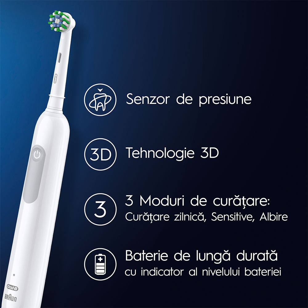 Set irigator bucal ORAL-B Oral Health Center, 5 viteze, 4 capete, 600ml, alb + Periuta de dinti electrica ORAL-B Pro Series 1, 2 programe, alb