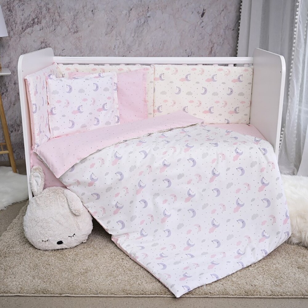 Set lenjerie pat LORELLI Smile - Moons Stars 20801155201, 10 buc, 120x60 cm, roz-alb