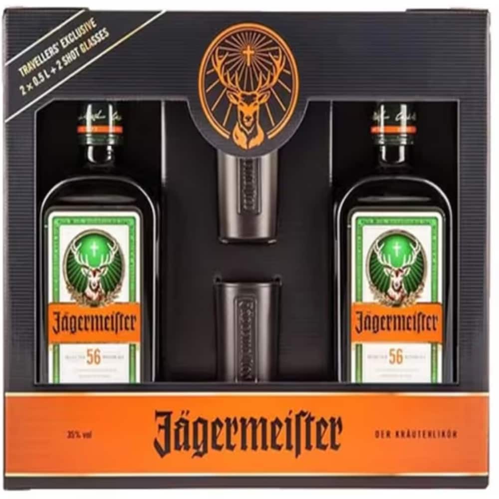 Set Lichior Jagermeister Twin, 2 x 0.5L + 2 shots