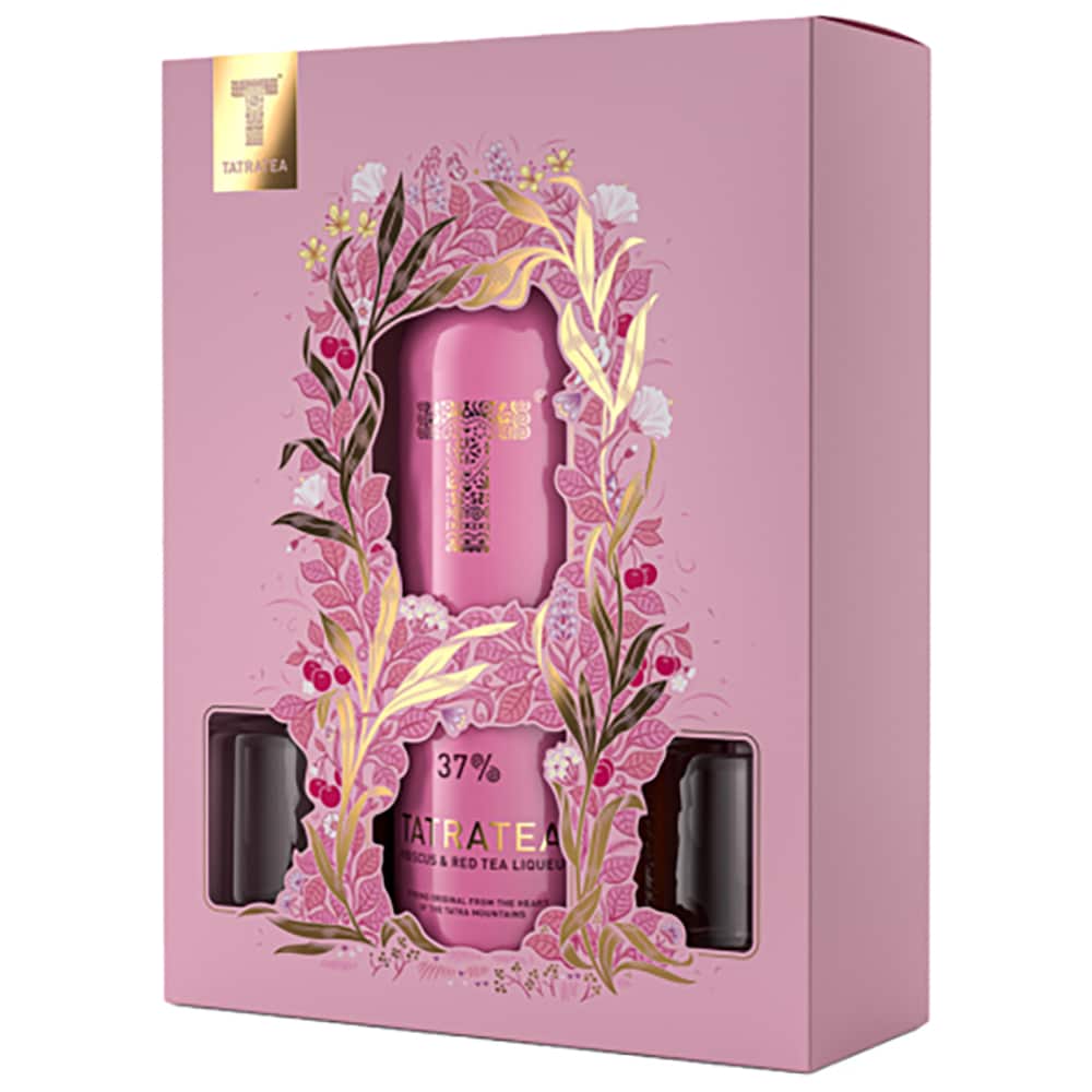 Set Lichior Tatratea Hibiscus & Red Tea, 0.7L + 2 pahare