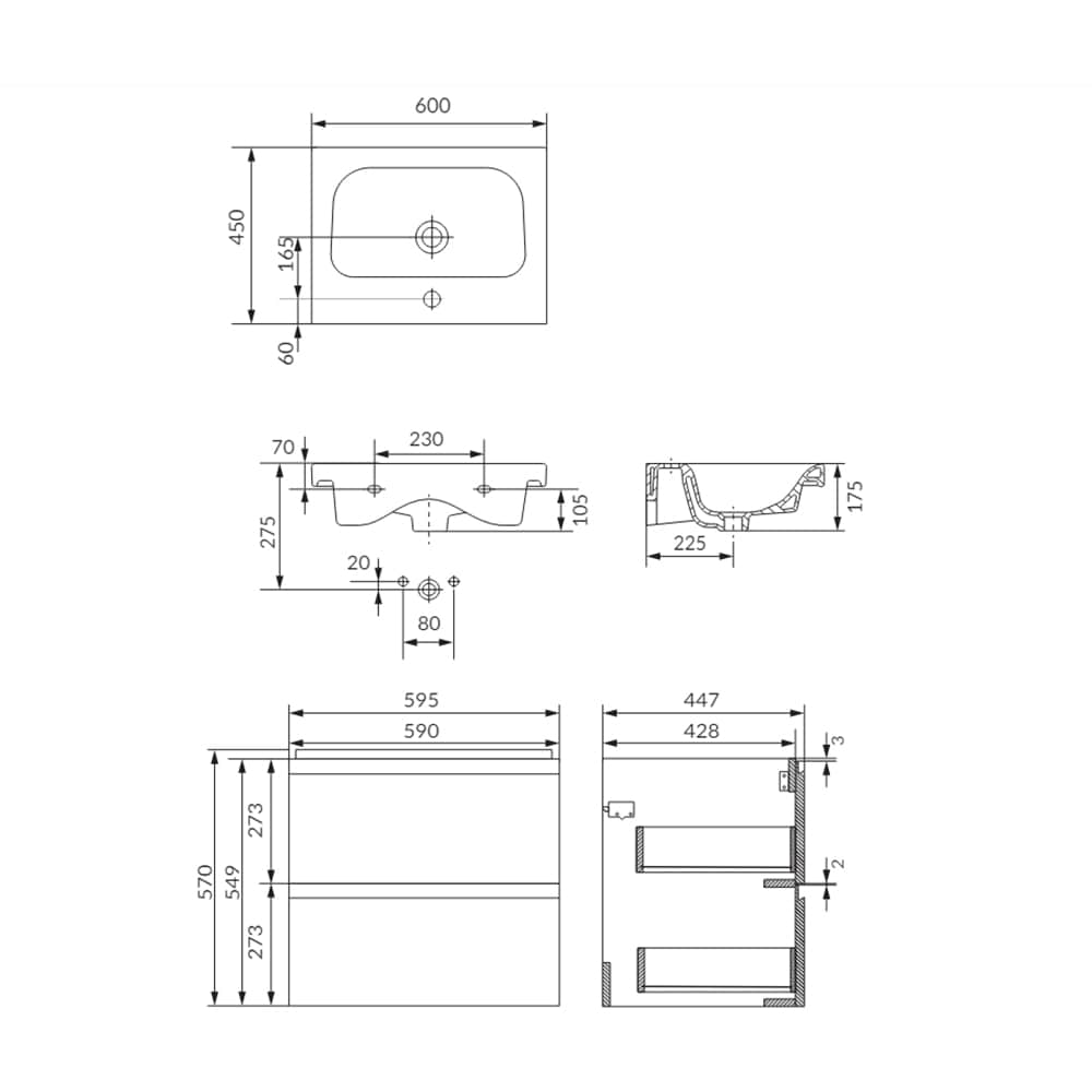 Set masca si lavoar Cersanit Moduo, 59.5 x 44.7 x 57 cm, antracit