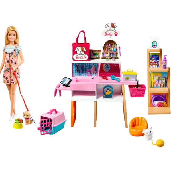 Set papusa BARBIE Magazin accesorii animalute MTGRG90, 3 ani+, multicolor