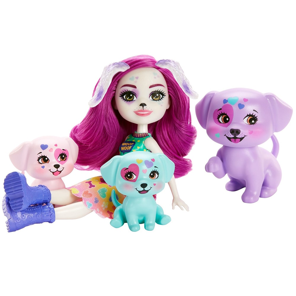 Set papusa ENCHANTIMALS City Tails Main Street - Familia Dessei Dalmatian MTHKN14, 4 ani+, multicolor