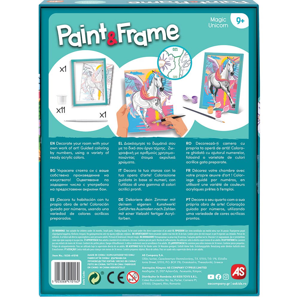 Set picteaza si inrameaza PAINT&FRAME Unicorn magic 103841016, 9 ani+, multicolor