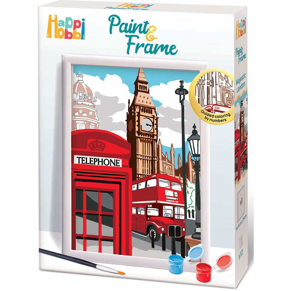 Set pictura pe numere PAINT&FRAME Happi Hobbi - Majestic London 103841023, 12 ani+, multicolor