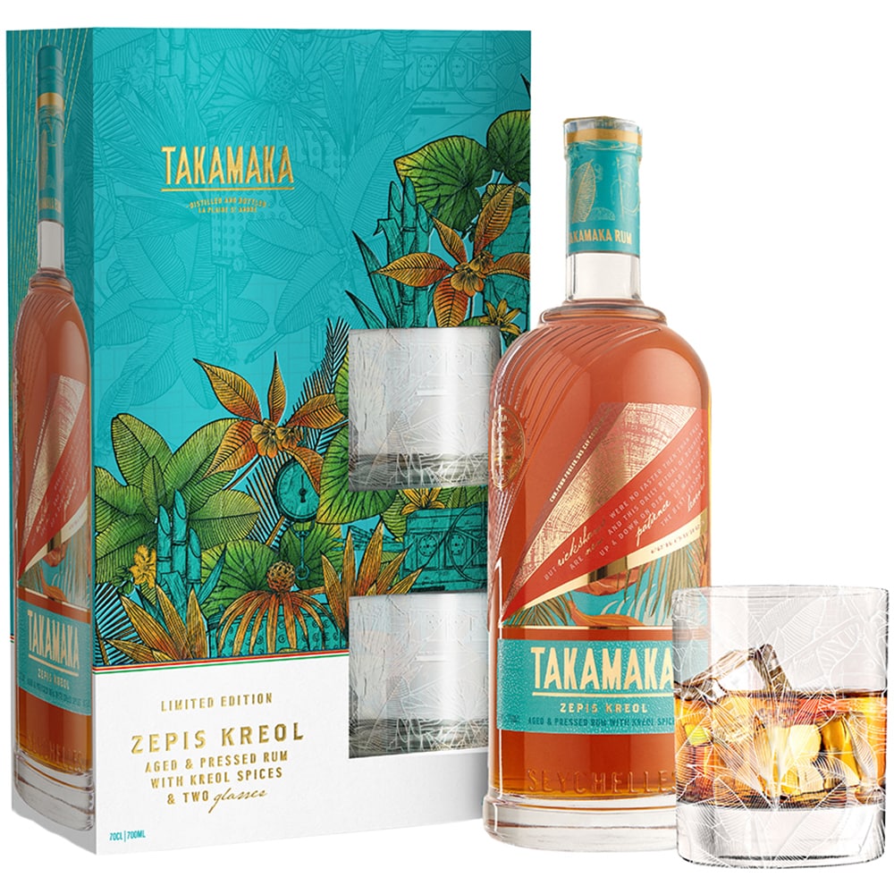Set Rom Takamaka St Andre Zepis Kreol, 0.7L + 2 pahare