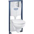 Set vas WC GROHE Bau Ceramic 39586000, montaj suspendat, evacuare orizontala, cu capac, alb