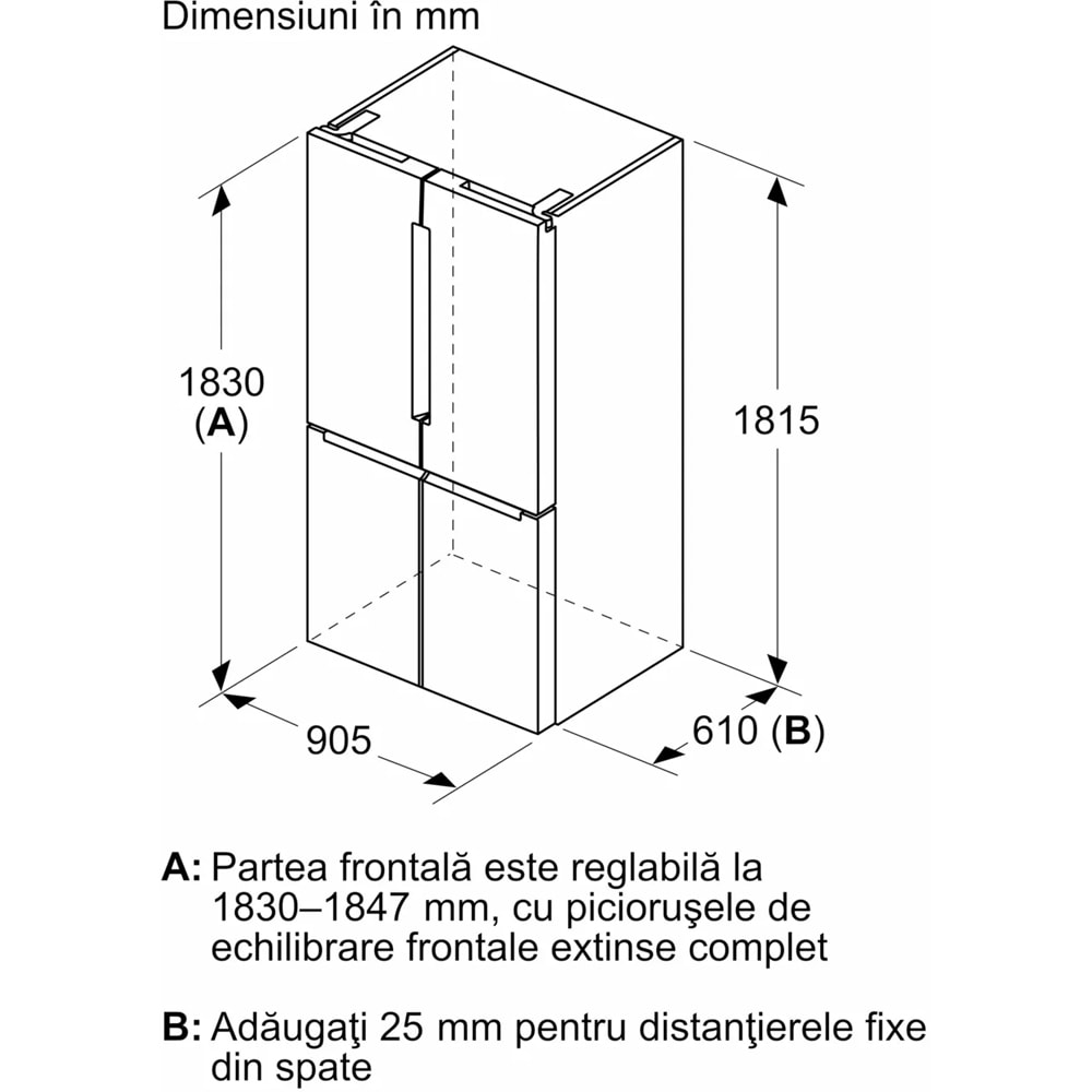 Side by Side BOSCH KFN96AXEA, No Frost, 605 l, H 183 cm, Clasa E, dark inox
