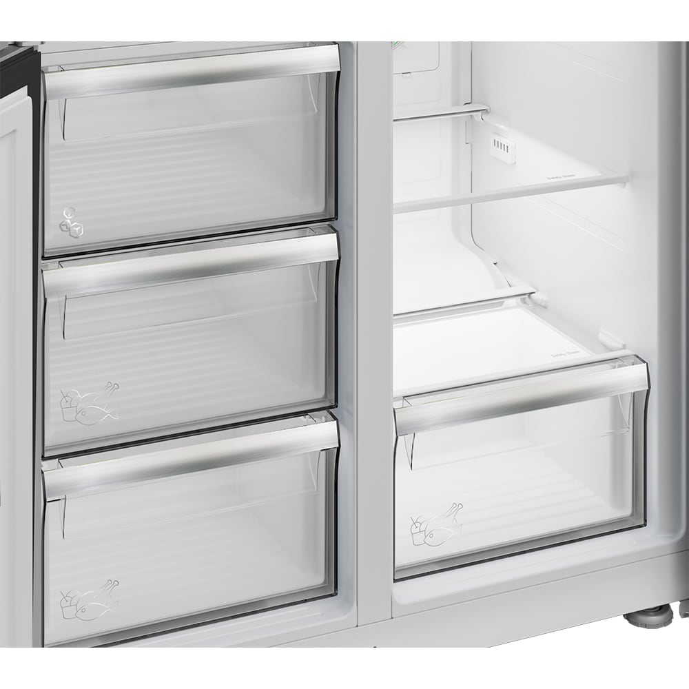 Side by Side GRUNDIG GQN21245GBN, No Frost, 572 l, H 182 cm, Clasa E, sticla neagra