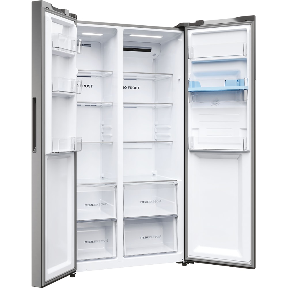 Side by Side HAIER HSR5918DWMP, Total No Frost, 521 l, H 177.5 cm, Clasa D, Dozator apa, inox