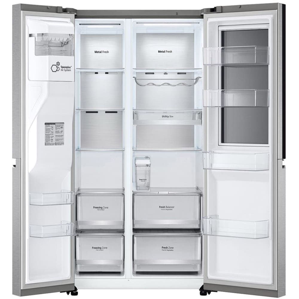 Side by Side LG GSXV91MBAE, No Frost, InstaView, 635 l, H 179 cm, Clasa E, Dozator apa, argintiu